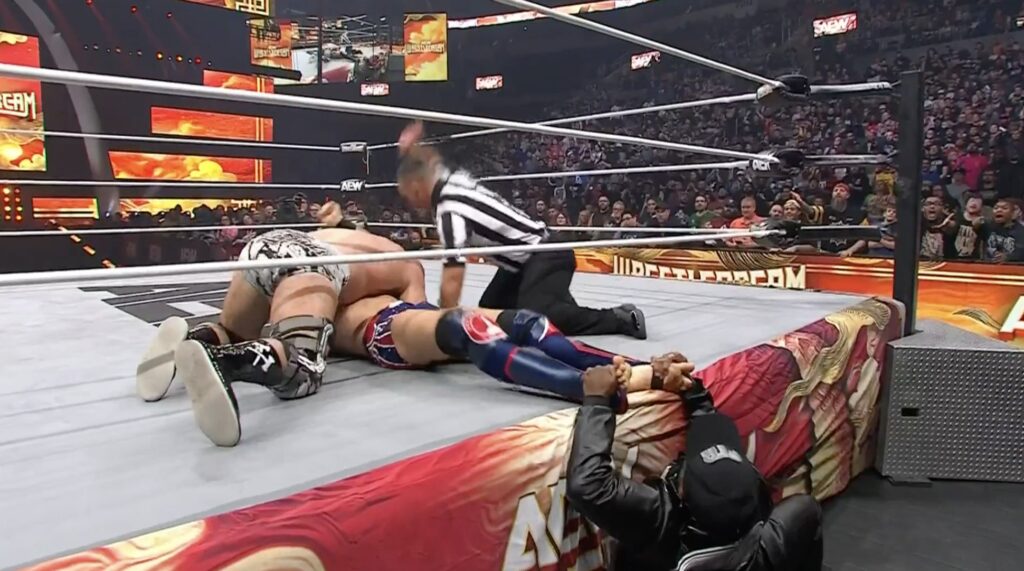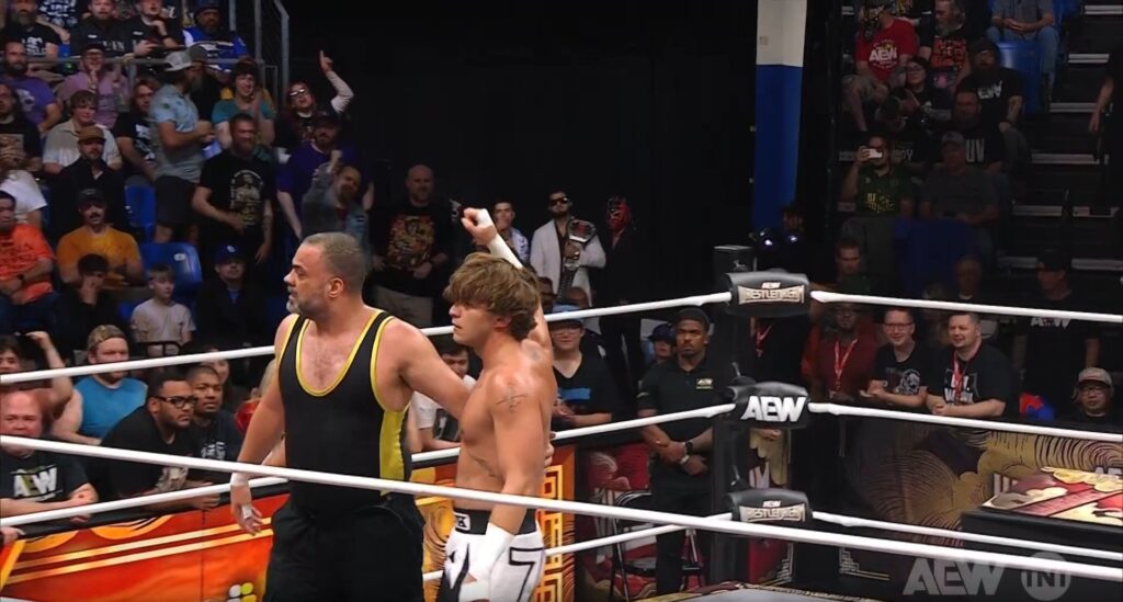 Yuta se convirtió en el hombre legal por los Death Riders, mientras que Orange Cassidy ingresó por The Conglomeration. Con ayuda de O’Reilly, Cassidy mantuvo el control con movimientos combinados, dominando a Yuta. Sin embargo, este evitó un atomic drop y contraatacó, cambiando el rumbo del combate.