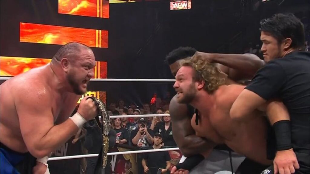 Tras finalizar el combate, Katsuyori Shibata y Powerhouse Hobbs entraron al ring para asistir a Samoa Joe, mientras la multitud coreaba su nombre con fuerza. Page y Joe intercambiaron un gesto de respeto levantándose las manos, pero Joe sorprendió a Page con un clothesline. Hobbs y Shibata se unieron al ataque, golpeando a Page, mientras Joe lo impactaba en la cabeza con el Campeonato Mundial de AEW.