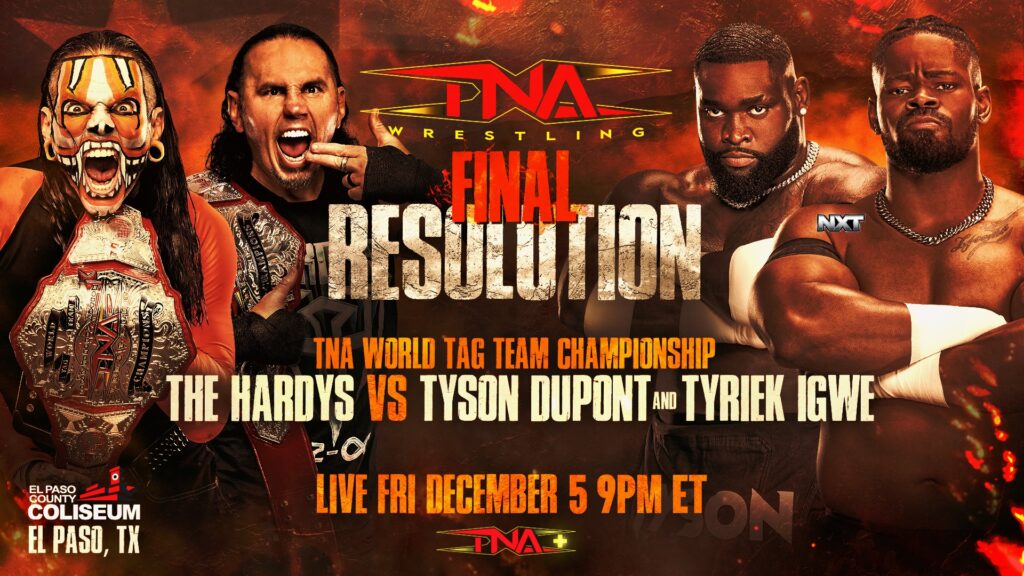 - TNA World Tag Team Championship: The Hardys (c) vs. Tyson DuPont & Tyriek Igwe (High Ryze)