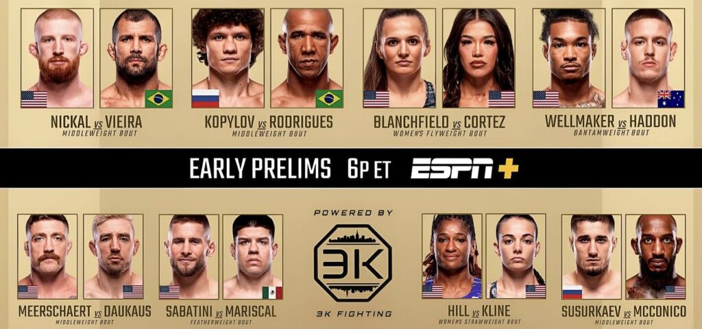 - Peso Medio: Bo Nickal vs. Rodolfo Vieira