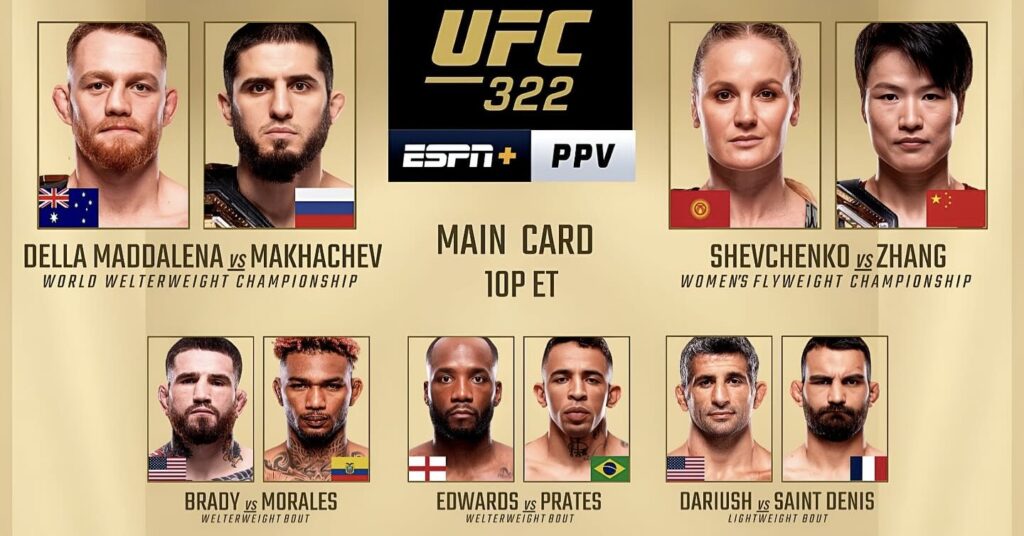 Cartelera UFC 322: Della Maddalena vs. Makhachev: