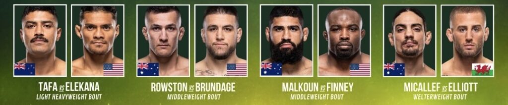 Será una noche histórica, ya que Volkanovski (27-4) defenderá un título mundial en su país natal por primera vez en su carrera. Ambos se enfrentaron por primera vez en UFC 314, en abril, donde el campeón se impuso por decisión unánime con tarjetas de 49-46, 49-46 y 49-45, en una batalla que recibió el premio a “Pelea de la Noche”.