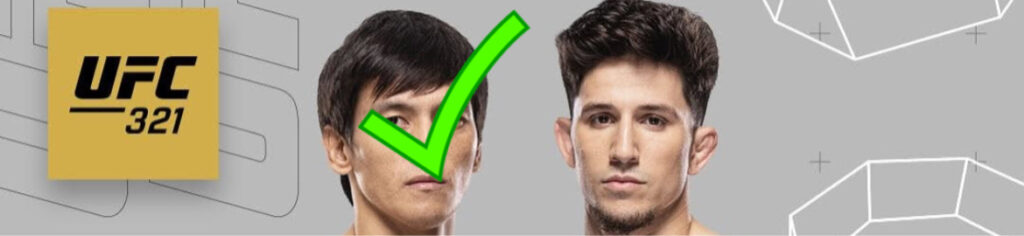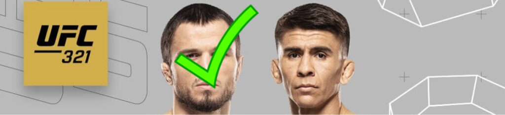 Nurmagomedov, con un sambo elite y striking rápido, combina patadas variadas con derribos precisos y un mataleón letal. Bautista, completo y fuerte, usa su presión y lucha para controlar, pero su striking es menos técnico. Nurmagomedov debería dominar de pie con velocidad y precisión, mientras busca derribos para neutralizar la presión de Bautista. Este, con buen cardio y defensa contra derribos, puede hacer la pelea competitiva, pero la superioridad técnica de Nurmagomedov en ambos planos será decisiva. La pelea probablemente irá a las tarjetas, con Nurmagomedov controlando el ritmo y acumulando puntos en striking y grappling.