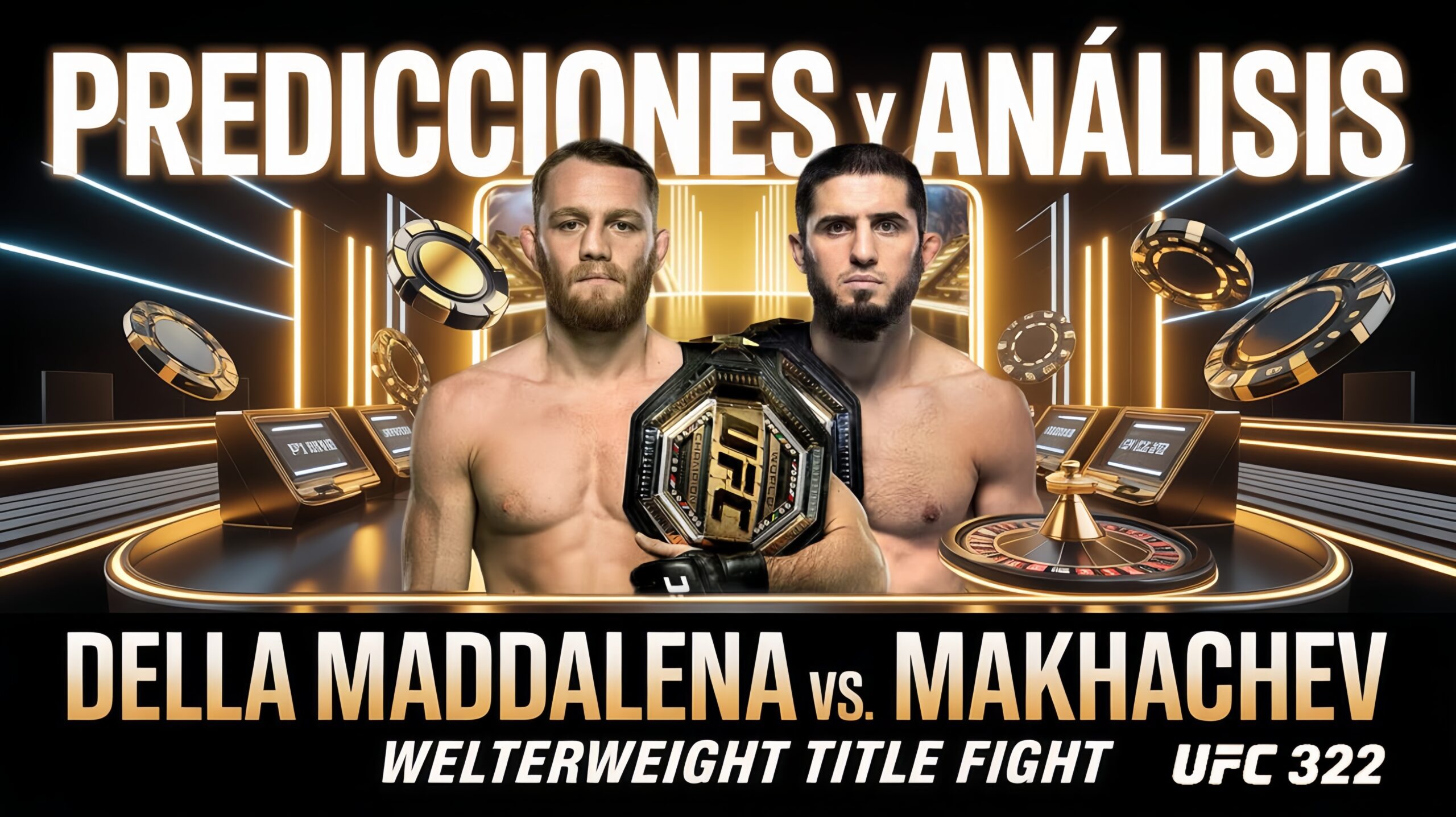 Descubre las predicciones y el análisis de la cartelera completa de UFC 322: Della Maddalena vs. Makhachev, que se llevará a cabo el 15 de noviembre de 2025 desde el T-Mobile Arena de Las Vegas, Nevada. Conoce a los favoritos según las casas de apuestas, sus rachas recientes, los peleadores con mayores probabilidades de victoria y los métodos de triunfo más probables. Además, explora las predicciones más confiables, los parlays más recomendados y las apuestas más seguras para obtener ganancias y proteger tu dinero 💰💵.