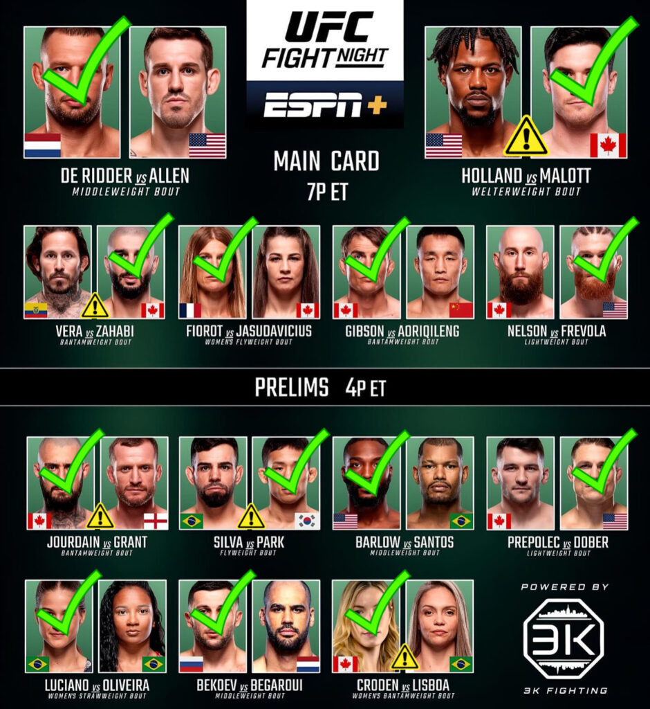 Predicciones y Análisis UFC Fight Night: de Ridder vs. Allen: