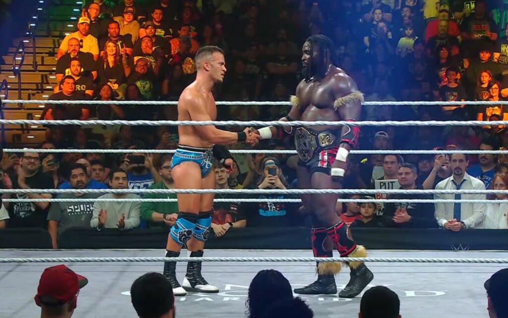 Tras la lucha, Je’Von Evans muestra deportividad estrechando la mano de Leon Slater y Myles Borne. También le ofrece la mano a Dion Lennox, pero Dion la rechaza y abandona el ring sin decir palabra.